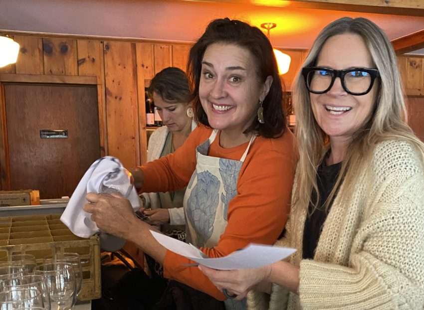 Image: Meg Sullivan (center) and Greta Knutzen (right) at last year’s Free Community Thanksgiving Lunch. (Credit: Tusten Social)