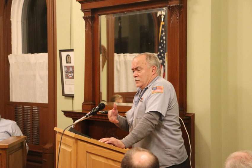 Image: Paul Hopkins, owner of Tri County Distributors, speaks on the potential imposition of an Earned Income Tax during a Monday, November 24 meeting of the Honesdale Borough Council. (Credit: Liam Mayo)