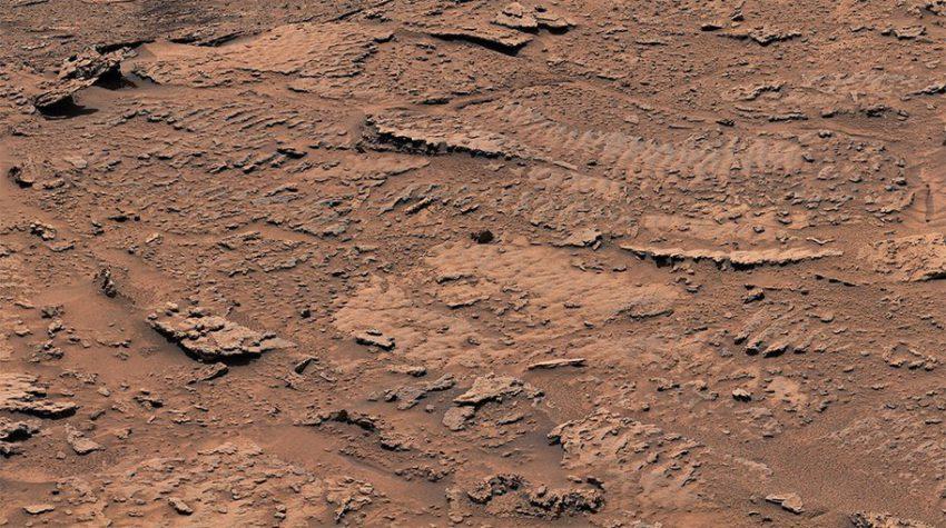 Image: Billions of years ago, waves on the surface of a shallow lake stirred up sediment at the lake bottom. The sediment formed into rocks with rippled textures that are the clearest evidence of waves and water that NASA’s Curiosity Mars rover has ever found. (Credit: NASA/JPL-Caltech/MSSS)